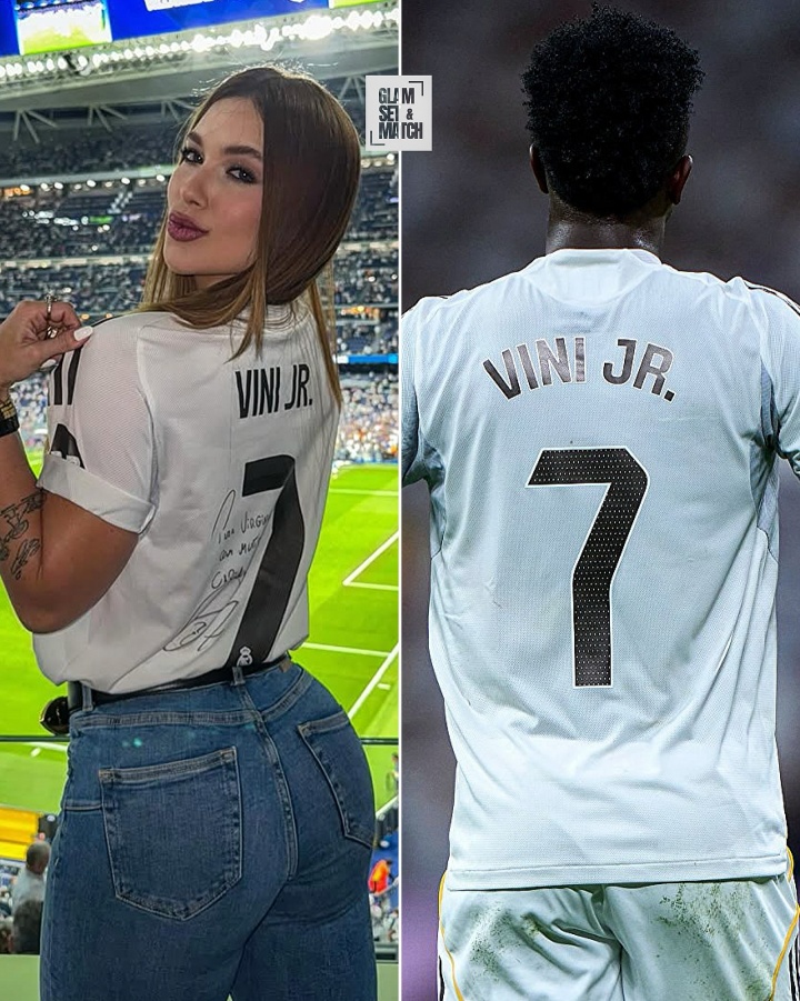 她秀出了自己穿皇马运动活动 服 的照片,并晒出维尼修斯的7号以及运动活动 服 上的亲笔签名。