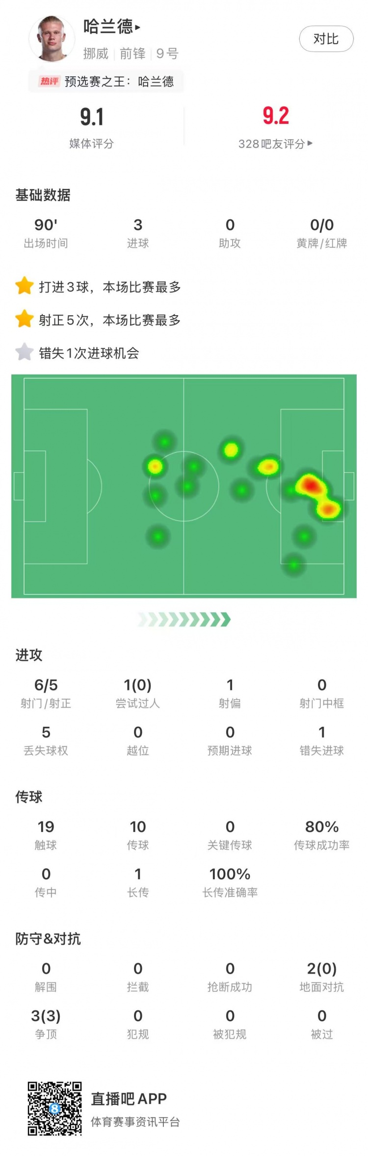 10月12日讯 世预赛欧洲区小组赛,挪威5比0大胜以色列,哈兰德杆位出战,上演独中三元,足球直播无插件免费在线观看6射球 5射正,打进3球,评分9.1全场最高。